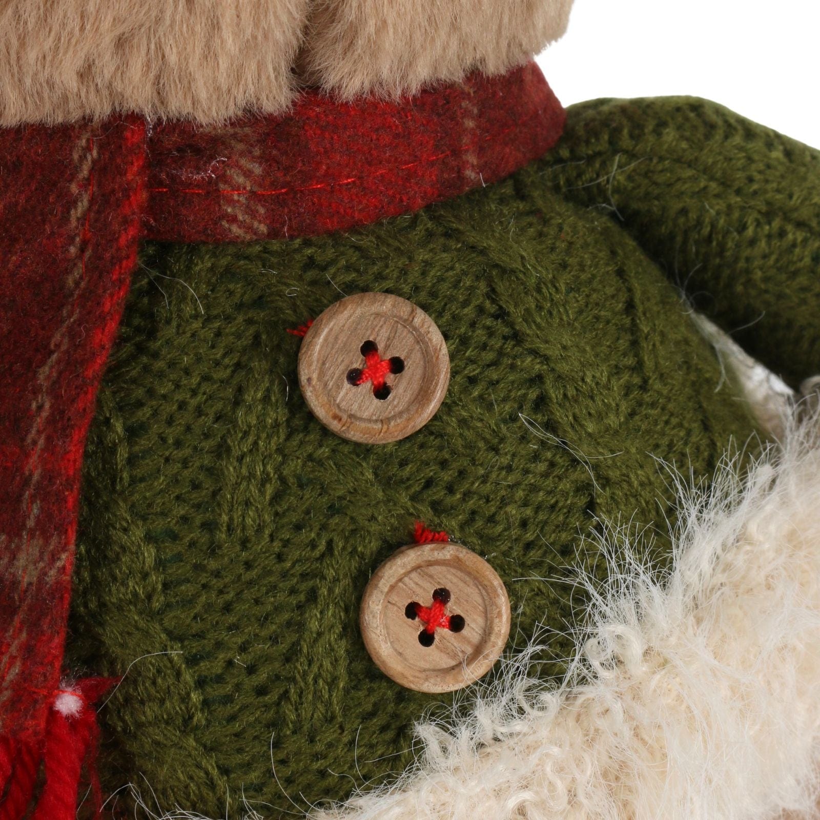 Everyone loves a teddy bear and this large plush Christmas bear is simply adorable. The cute standing bear decoration is made from soft fabrics and knits in festive red, white and green. The 56cm tall Christmas bear wears a green chunky knit jumper with fluffy trim, a red tartan scarf and a red Santa hat with jingle bell. Perfect for placing on a hall table or beside your fireplace to make a big impression on your Christmas visitors.