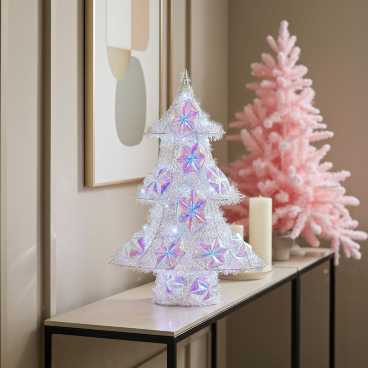 Mr Crimbo Light Up Iridescent Christmas Tree Tinsel Decoration 54cm