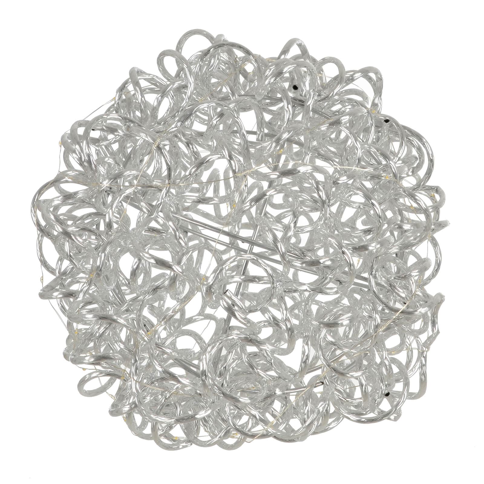 Make your festive decor shine with the Mr Crimbo 30cm Pre-Lit Silver Hanging Christmas Ball. Crafted from twisted aluminium for a modern metallic finish, this versatile decoration is illuminated with 100 warm white copper wire micro LEDs, creating a brilliant yet cosy glow. Perfect for hanging by your front door, in windows, from ceilings, or even from tree branches, it instantly updates your Christmas display with an elegant, contemporary touch. The built-in timer function (6 hours on / 18 hours off) ensures hassle-free use, while the waterproof battery box makes it suitable for both indoor styling and outdoor spaces. Use a single ball for subtle charm, or group multiple together for a stunning statement feature that will wow your guests.