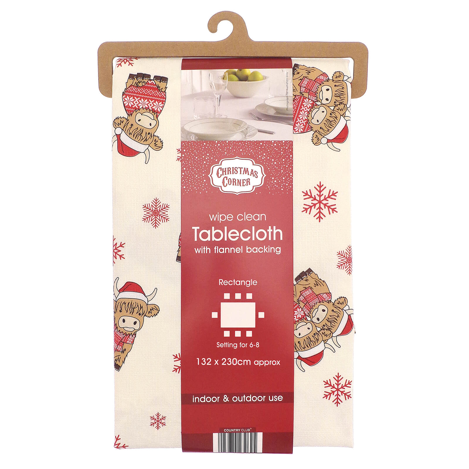 Large Christmas Tablecloth Wipe Clean PEVA Flannel Back 132x230cm