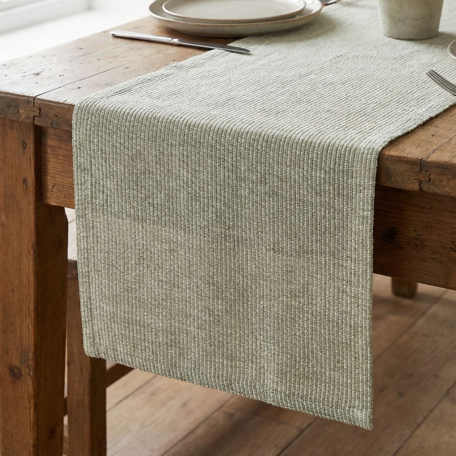 Add the perfect centrepiece to your dining table and be kinder to the planet with this Eco Friendly Table Runner from the Green Living Collective range. The table runner will help protect your dining table from food spills, hot plates and water marks. The table runner is made from woven ribbed cotton rich, recycled materials and edged on the 2 long sides with a contrast white border. Length: 180cm. Available in a choice of colours to suit your dining room decor