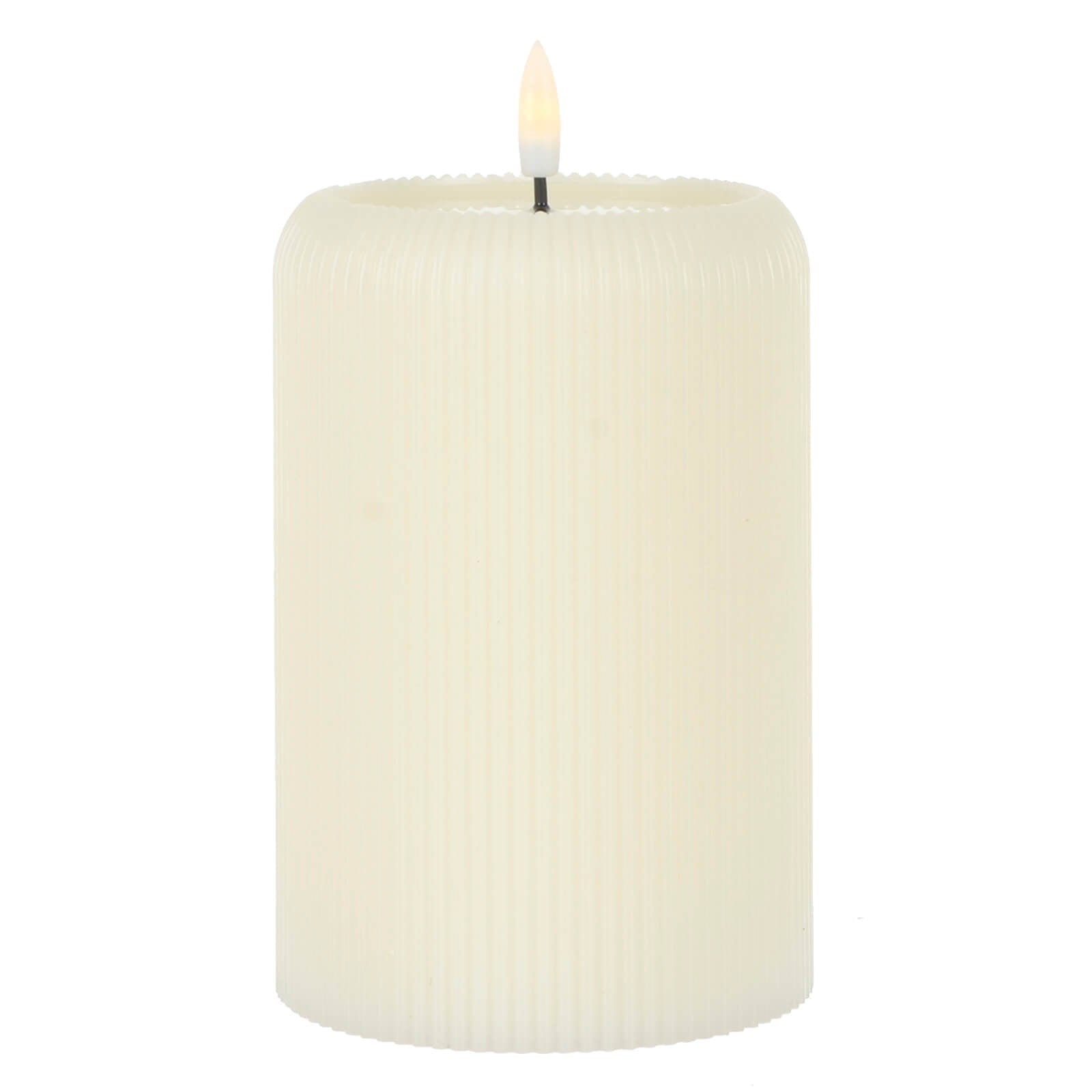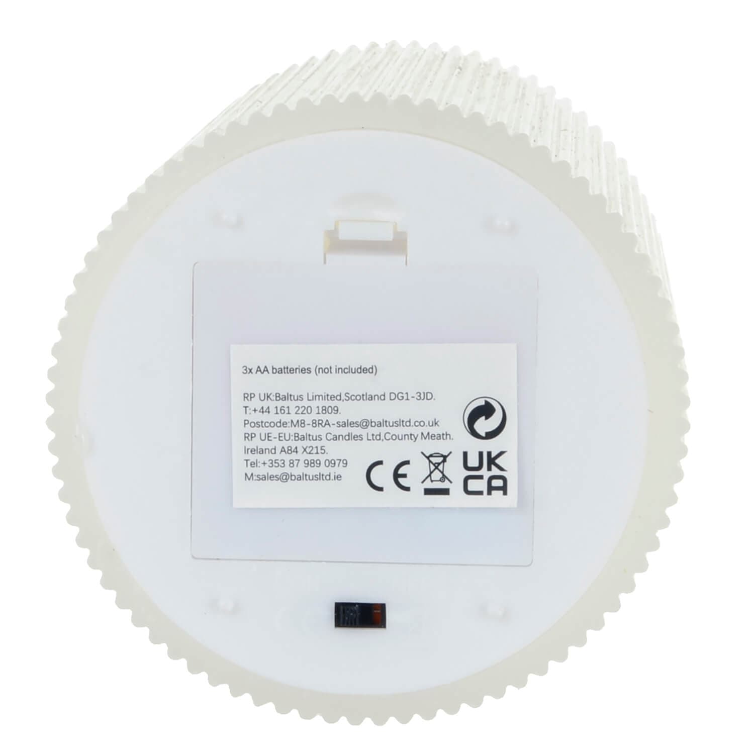 Enjoy all the benefits of a real candle with this Flameless Real Wax LED Candle from Baltus. The large 15cm tall wax candle comes with a realistic flickering flame effect LED light to mimic the relaxing glow from a real candle flame but without the risk of fire. The ivory coloured wax has a ridged design for a stylish addition to any room in your home. The LED candle is battery operated so you can move it around to any room to create a calming ambience. Perfect for a dinner party table centrepiece or a relaxing evening with a good book.
