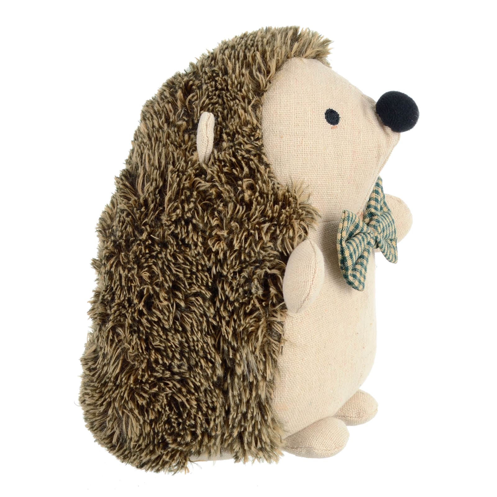 This adorable fabric hedgehog door stop is heavy enough to hold most interior doors open or closed with style. With long fleece 'quills', black pom pom nose and checked bow tie, this cute woodland creature door stopper is both functional and decorative. Perfect for adding a touch of rural charm to your home.